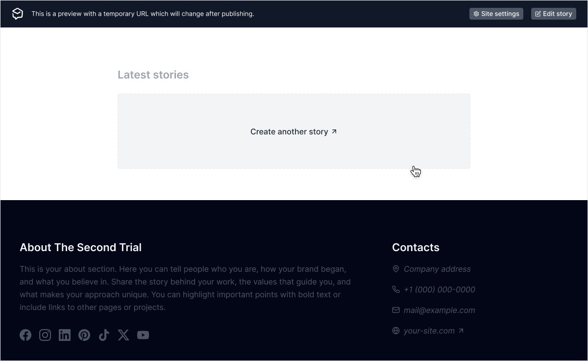 Site and story preview now do more than before. Our goal with this project was to make it easier to set up an empty site.