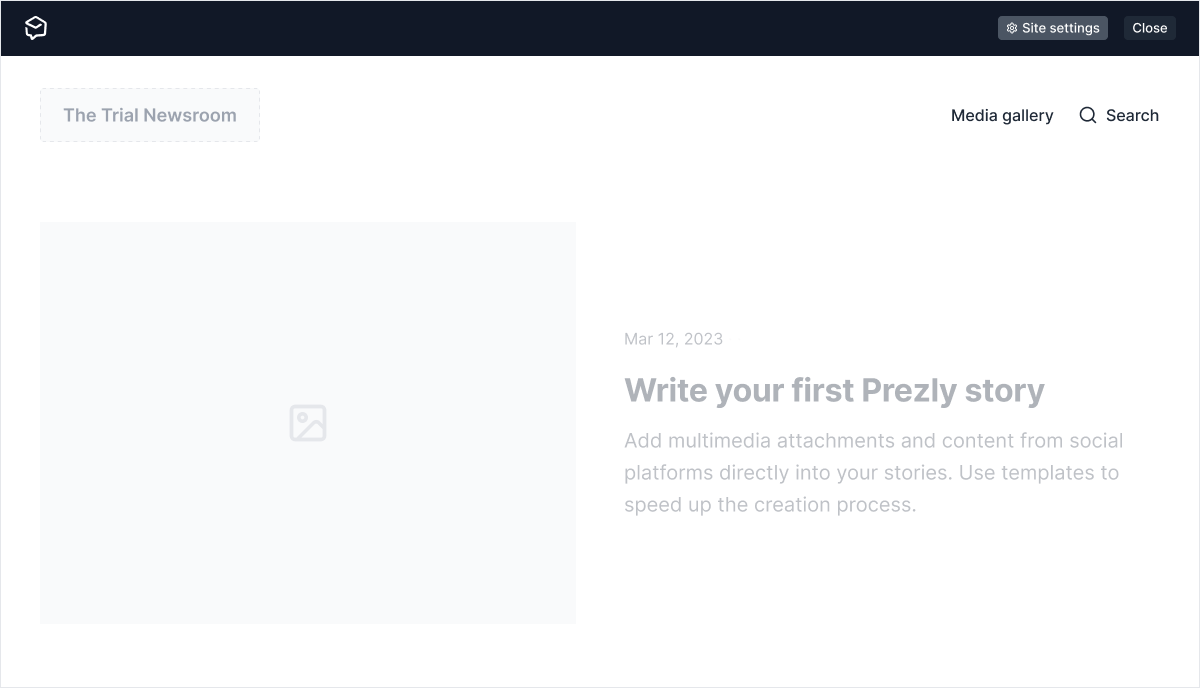 When your site doesn’t have content, we now show placeholder blocks that link directly to the right feature in the Prezly app, so you can add content faster.