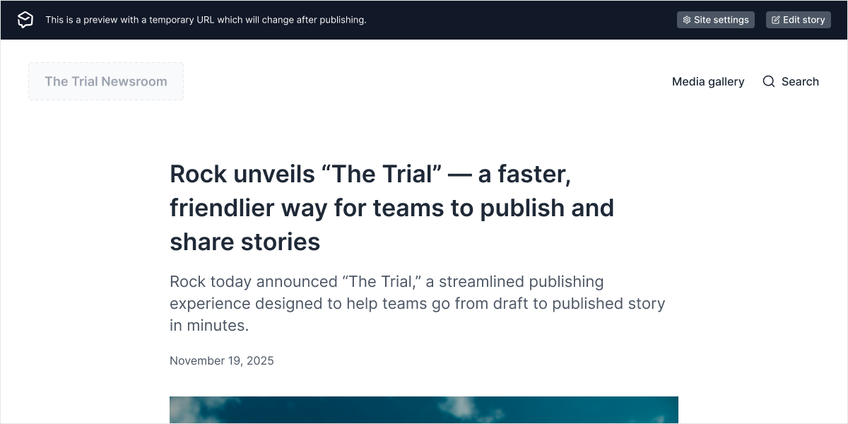 From now on, when you preview a story, you’ll see a new dark banner with information about the preview and quick links to Site settings and the Story editor.