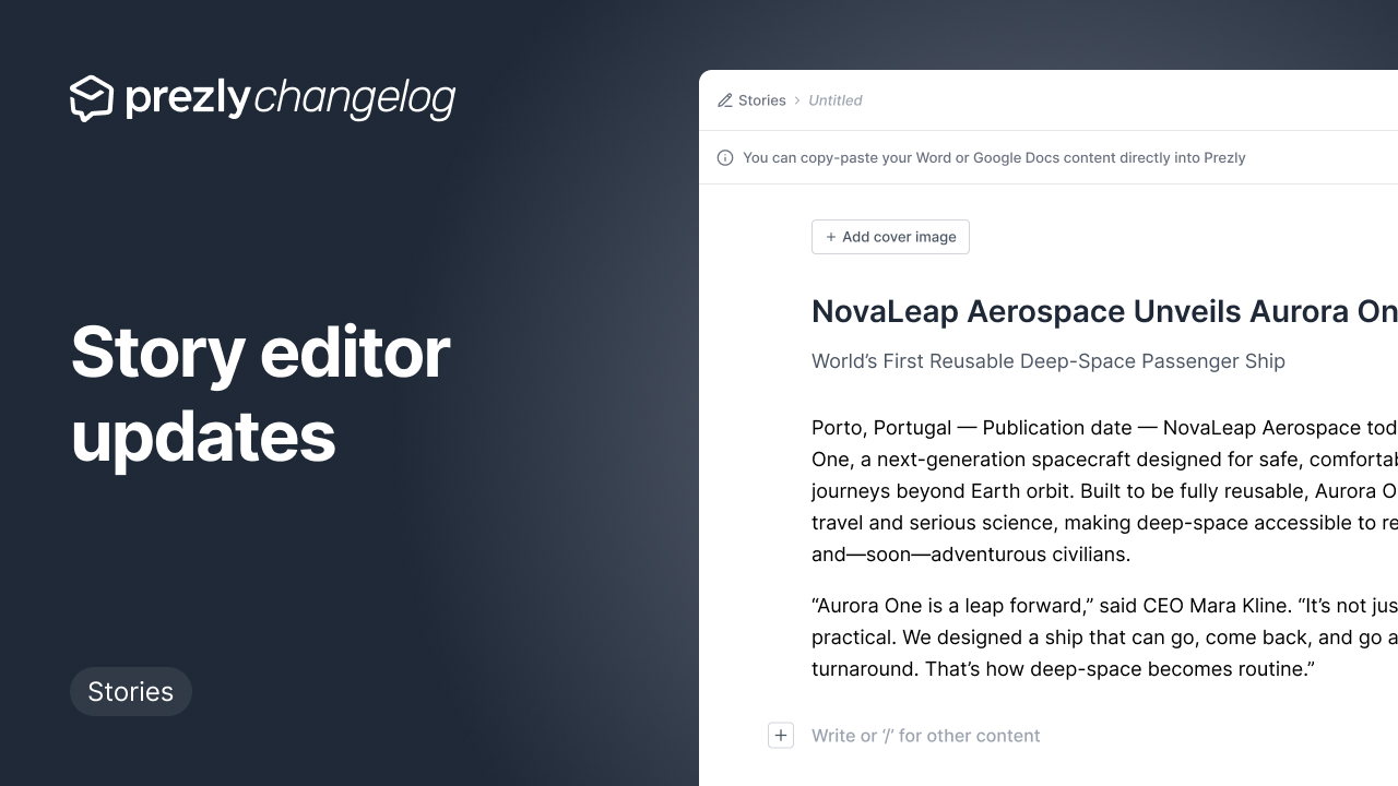 Explore Prezly's latest feature releases, product enhancements, design updates, and bug fixes.