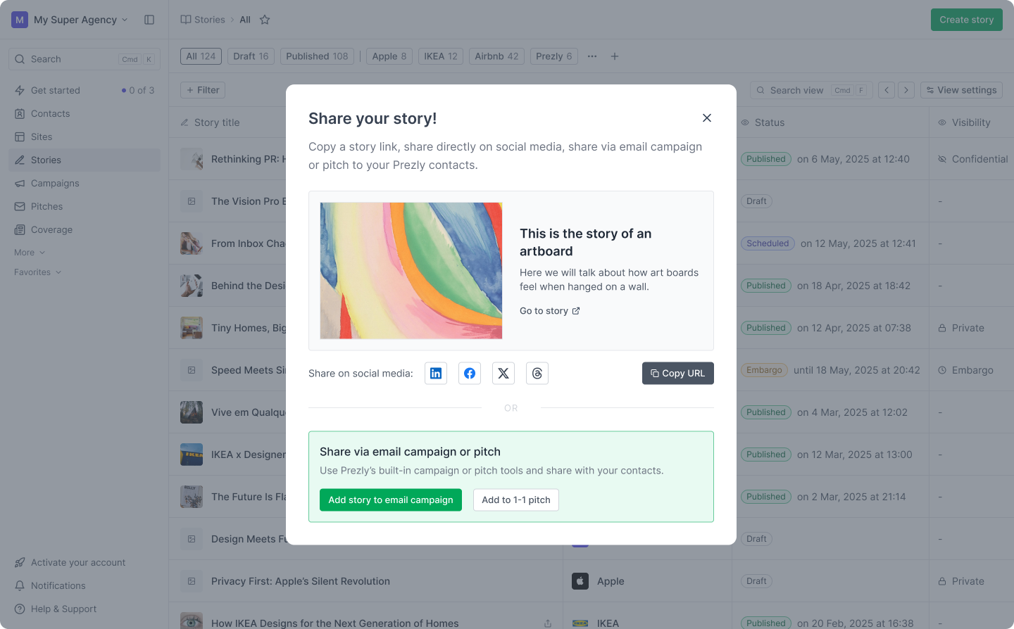 Publishing something new? The updated sharing modal makes it simpler to spread your story across channels right after you hit publish and throughout the app.