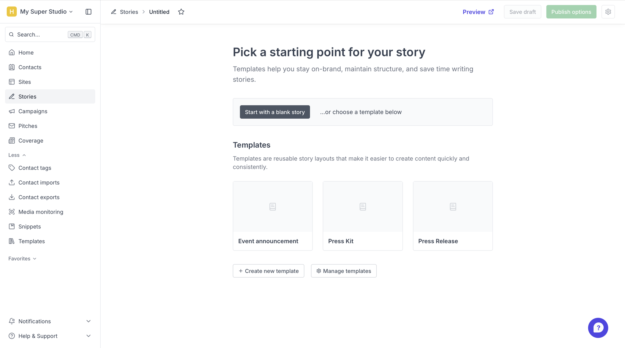 Starting writing from scratch can be time-consuming, especially when you’re creating a similar type of story again and again. With templates, you can save time, ensure best practices, maintain consistency – and focus on the message rather than the formatting.